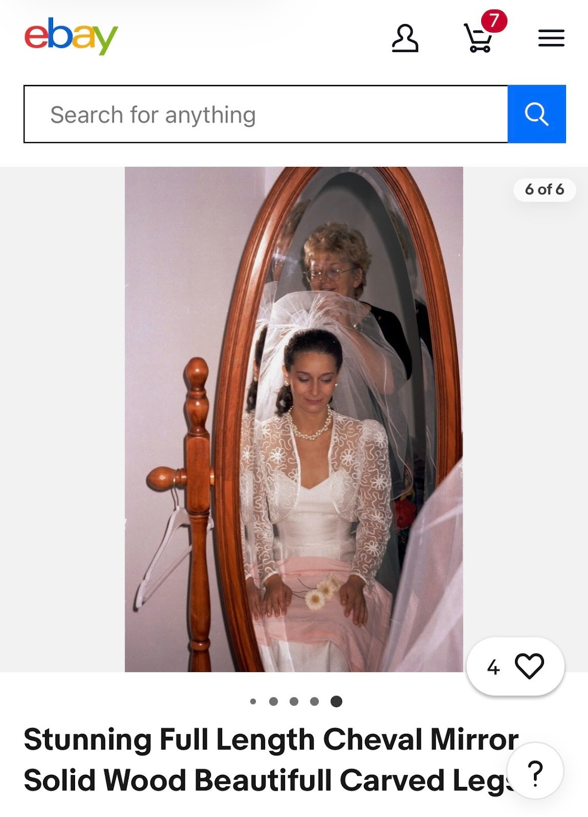 Or this rather unremarkable mirror I bought purely because the seller shared photos of her mother adjusting her wedding veil in its reflection some 30 years ago: