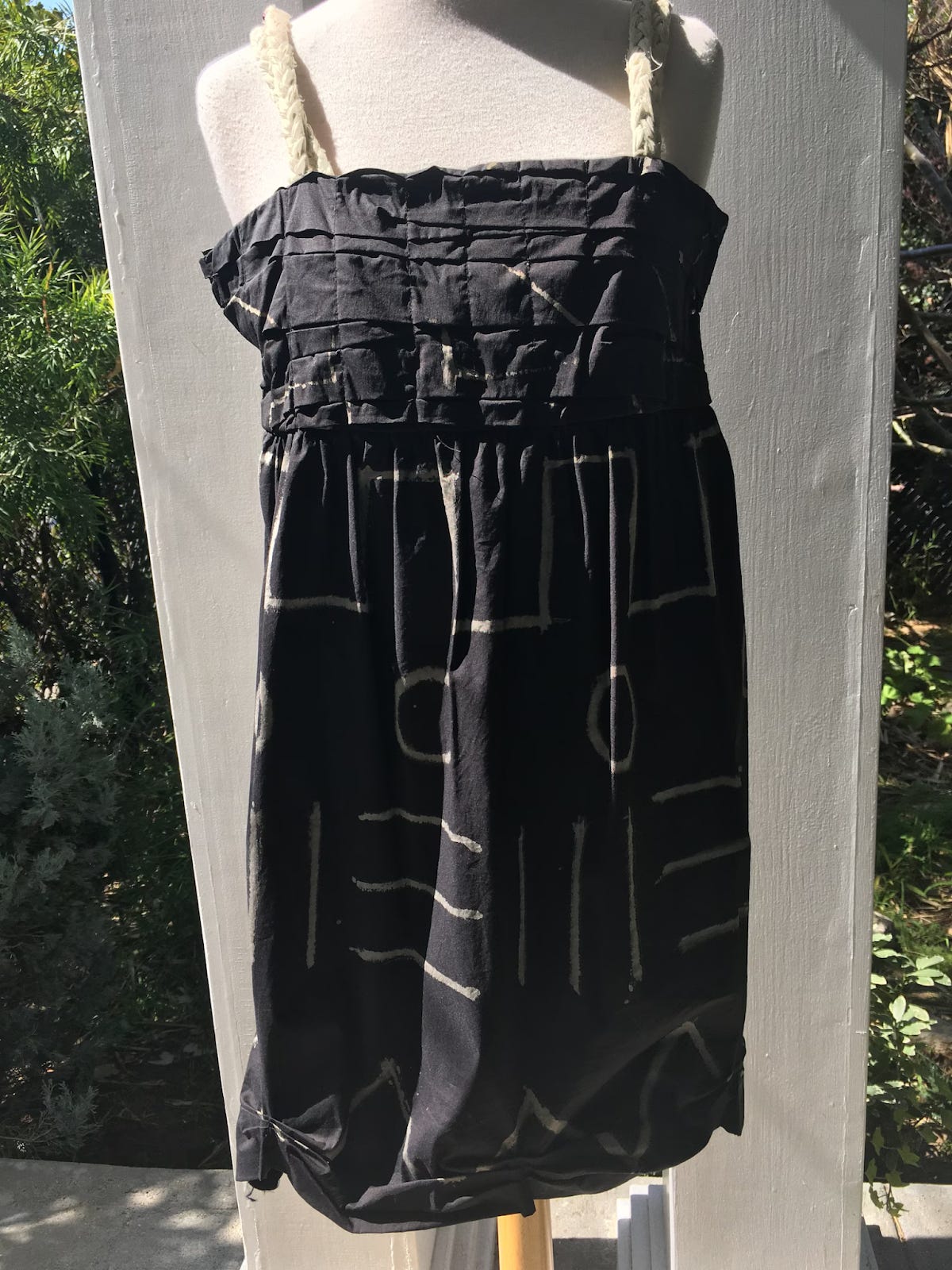 The Lena having her second life looks a little like this, I think: wearing a piece of polka-dotted extra yardage with a ripped hole for the neck, and a tube top constructed of multiple headbands…