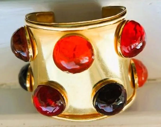 I’m crazy for cabochon- something about the way it looks both edible and religious. I recently got a friend a fat 70s cabochon cuff in reds and oranges and I’ve never felt like a better gifter because she wore it out of our date and to an event that very night.